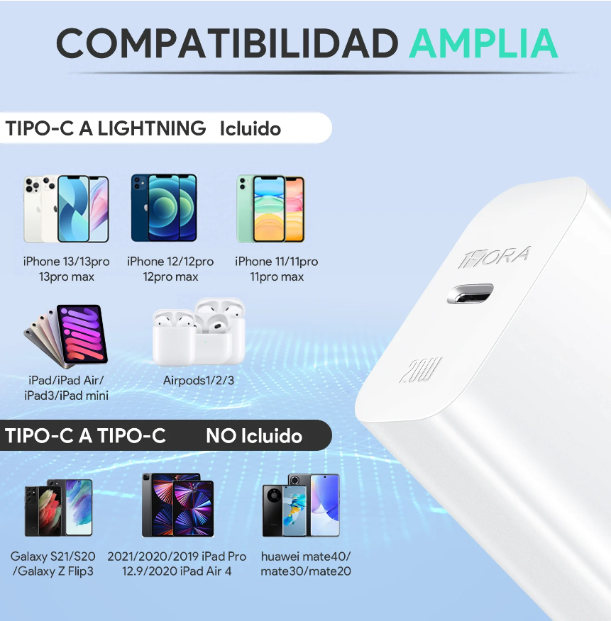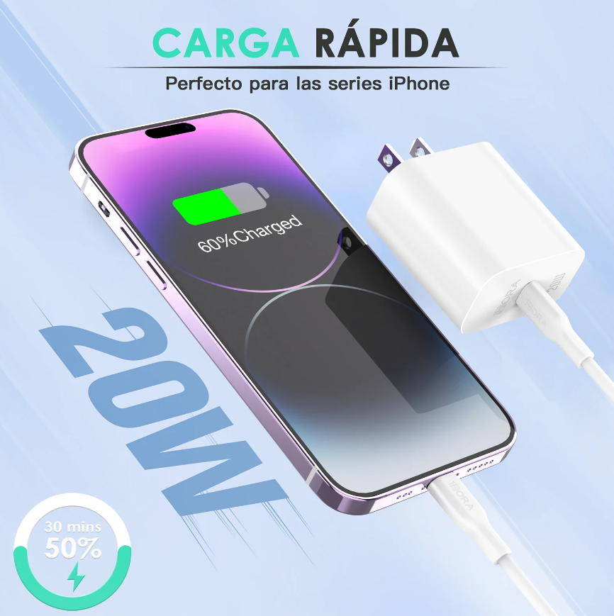 Cargador Tipo C 20W con Cable Lighting GAR154 1HORA