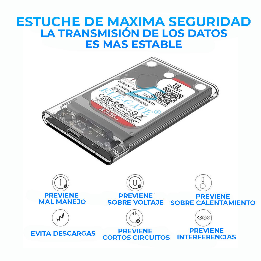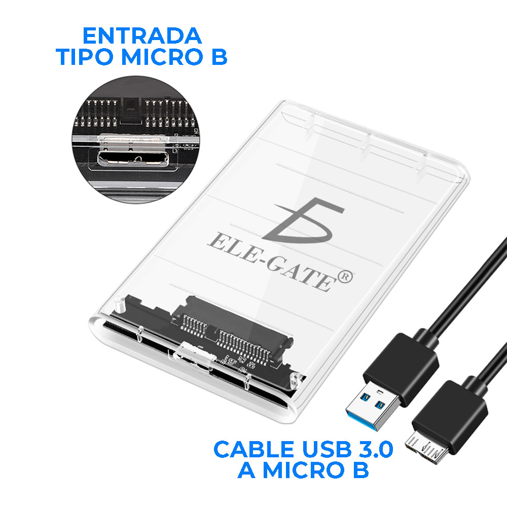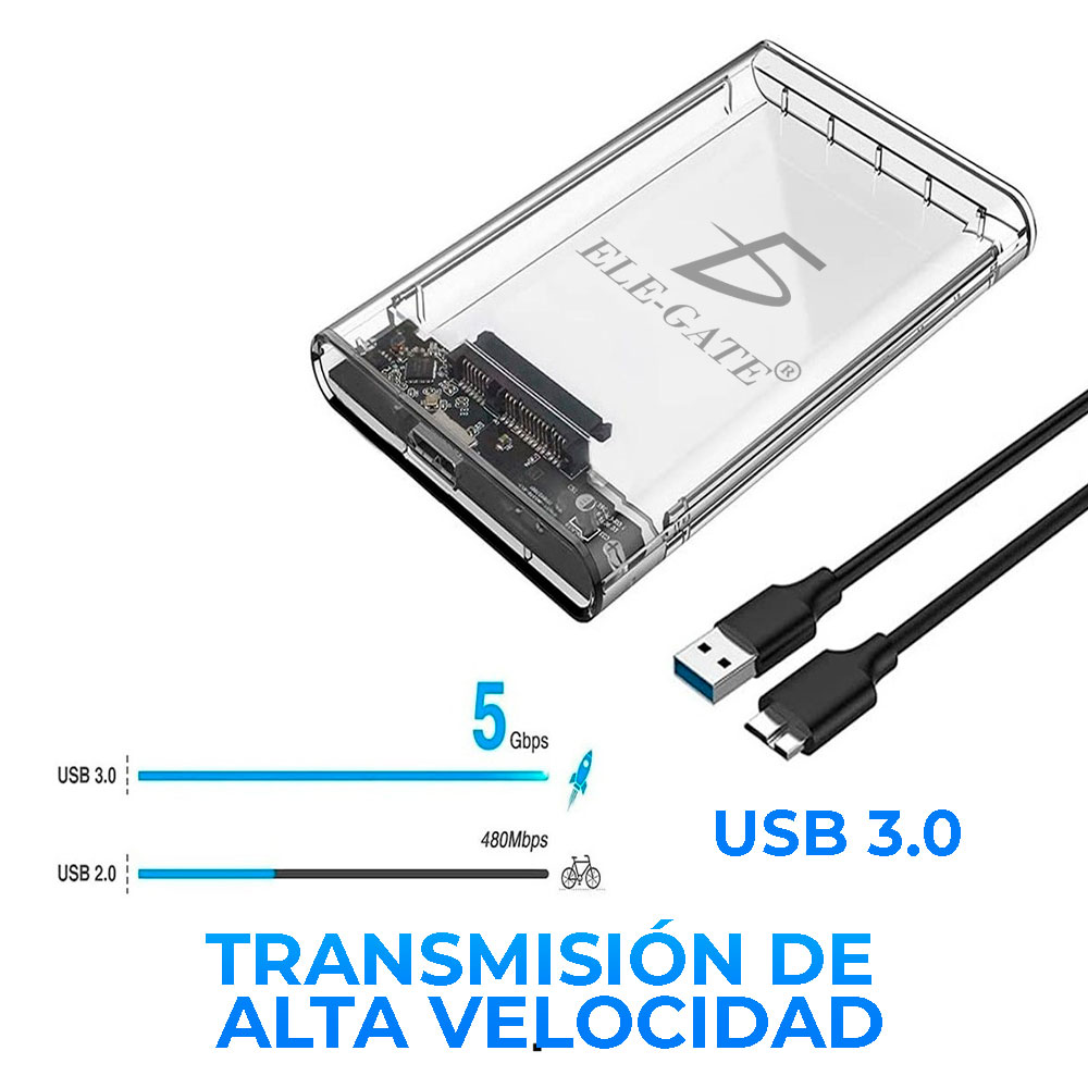 Gabinete Carcasa Disco Duro 2.5 pulgadas Externo Sata Case Usb3.0 TRANSPARENTE