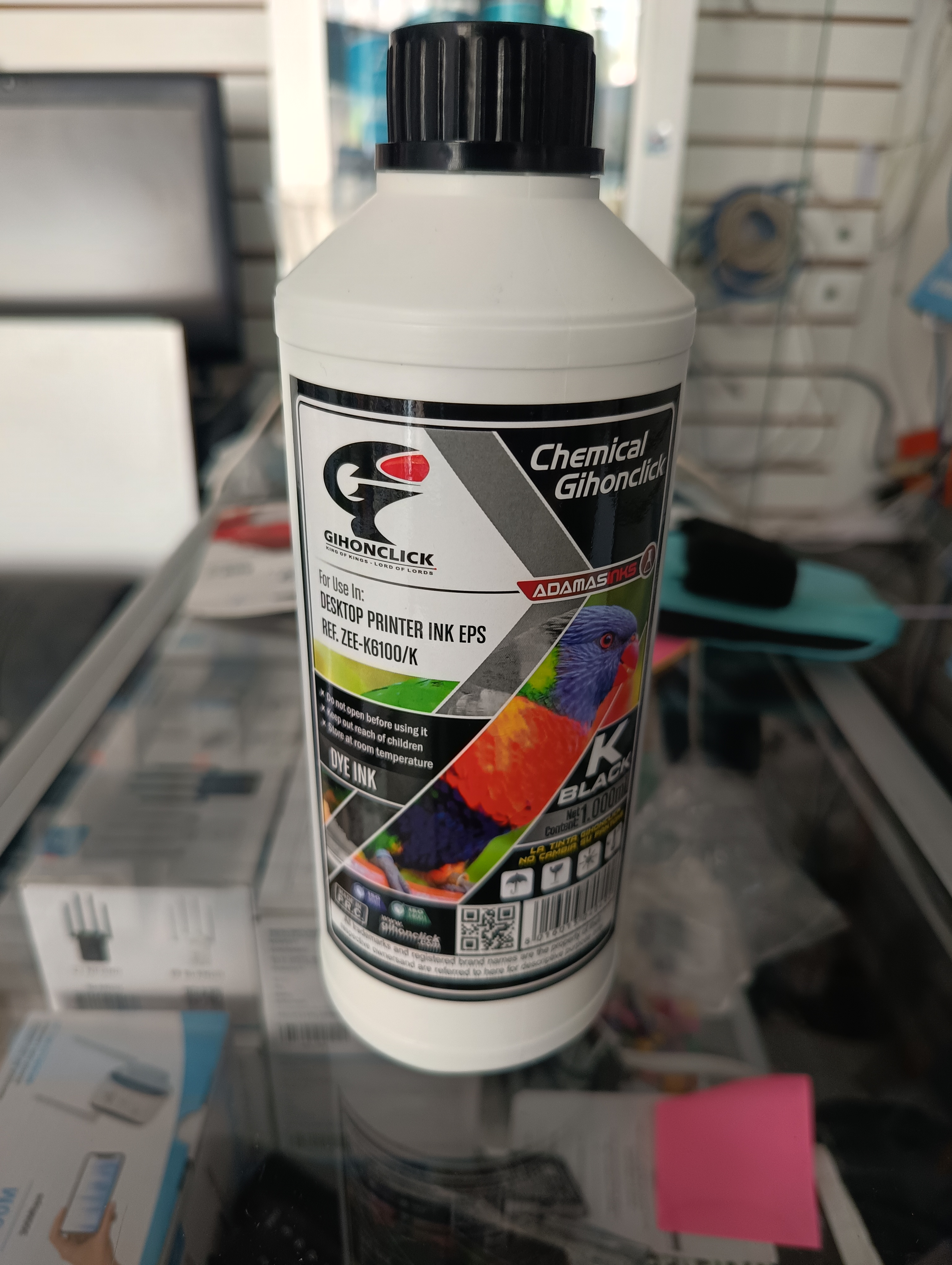 1 litro de tinta universal compatible con cualquier marca o modelo de impresora.